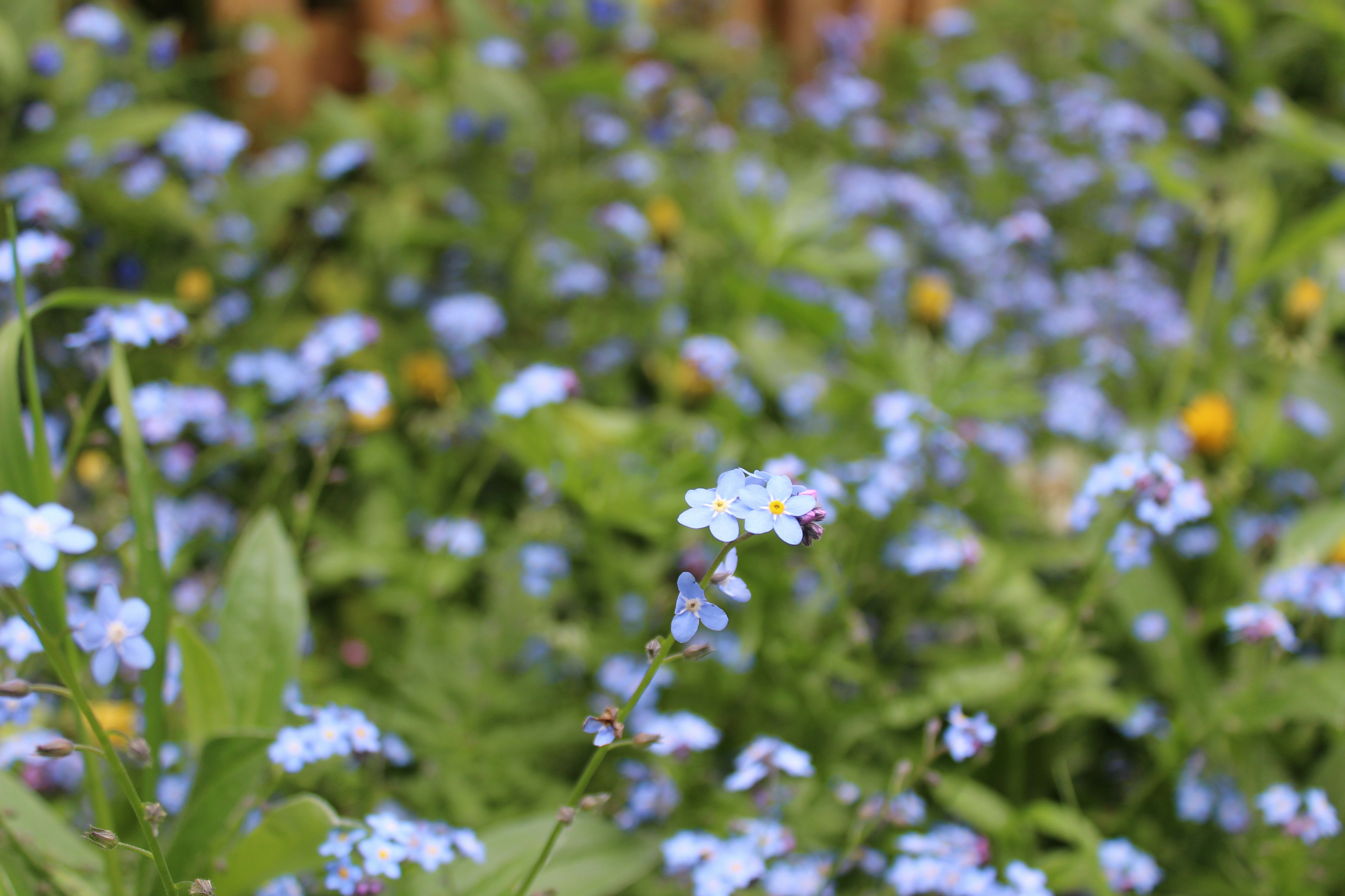 The forget me nots are out. The bluebells are out. Be with them. The wild mountain irises are in bloom and they’re like a Bob Dylan song.